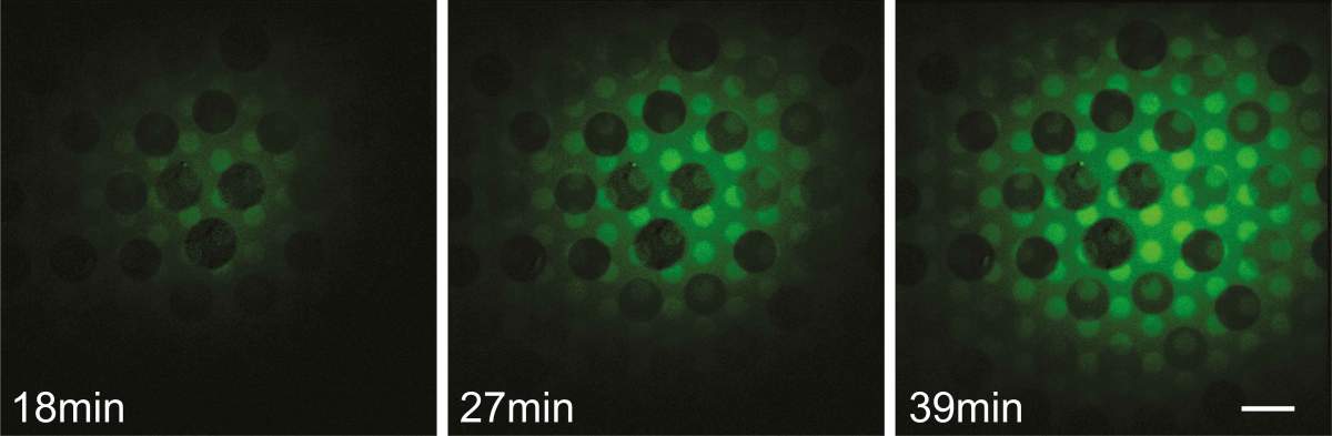 In the beginning, Prof. Bar-Ziv and Dr. Shulman Daube found that while they could make the components, getting them to self-assemble, as the natural structures do, was a challenging hurdle. Over the course of the next seven years and hundreds of trials, the scientists tracked down the proper placement of the genes on the chips. Similar to the organization of genes in the chromosome, the genes on the chip had to be positioned in the right locations, and in the proper relative quantities. This, it turned out, was crucial to the overall orchestration of the complex assembly process. Each time, the scientists would attach a different constellation of genes to the chips, narrowing down the possibilities until they had a composition that could mimic that natural process of subunit production as well as self-assembly.